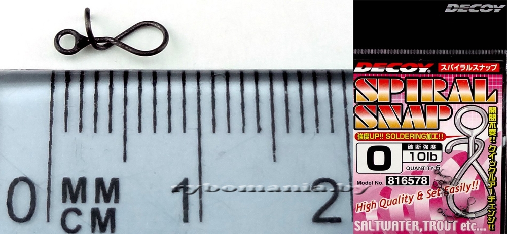 Застежка Decoy SN-5 Spiral Snap с пропаянной петлёй для привязывания лески применяется для оперативной смены приманки. Используется высококласная пружинная сталь, поэтому фиксация приманки на такой застёжке не вызывает никаких вопросов. Подходит для пресной и солёной воды и для приманок всех типов от микро колебалок до воблеров.