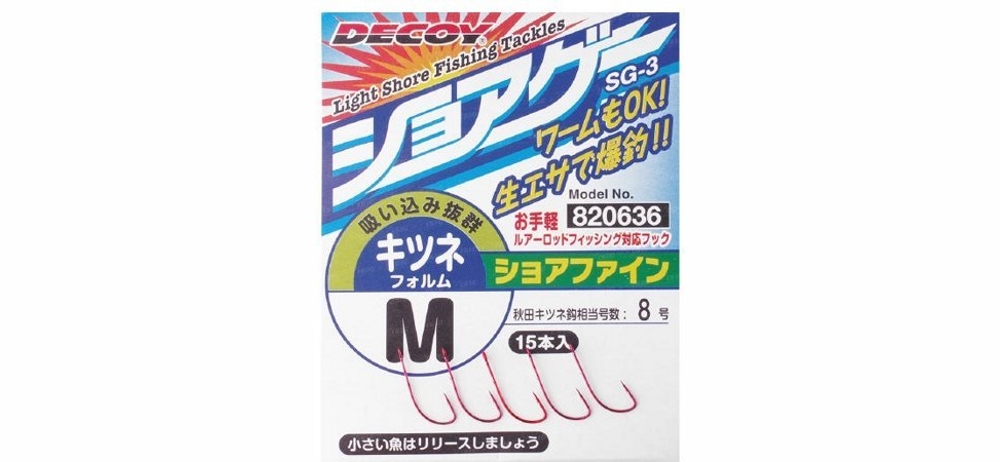 Крючки Decoy серии SG-3 отличаются уникальным строением и формой, которая сочетает в себе конструкцию обычного и офсетного крючков. Благодаря этому, данная модель идеально подходит для оснащения маленьких силиконовых имитаций червей и других прогонистых приманок типа "слаг".