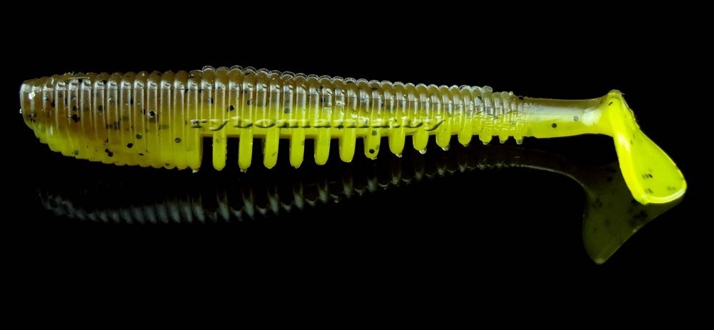 Геометрия тела напоминает небольшую рыбку. Обеспечивает динамичные колебания. Боковые «ребрышки» обогащают игру приманки, а внутренний полый канал в теле придает дополнительную гибкость и упрощает монтаж любой (Jig Head Rig, Texas Rig, Carolina Rig, Terminal Rig, Drop Shot Rig, Double Hook Rig), даже очень сложной оснастки.