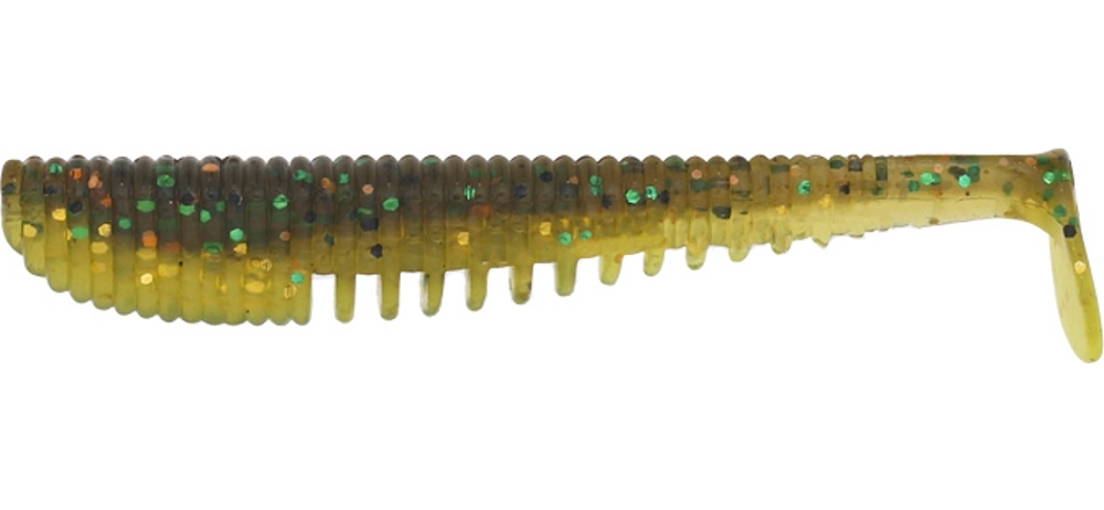 Геометрия тела напоминает небольшую рыбку. Обеспечивает динамичные колебания. Боковые «ребрышки» обогащают игру приманки, а внутренний полый канал в теле придает дополнительную гибкость и упрощает монтаж любой (Jig Head Rig, Texas Rig, Carolina Rig, Terminal Rig, Drop Shot Rig, Double Hook Rig), даже очень сложной оснастки.