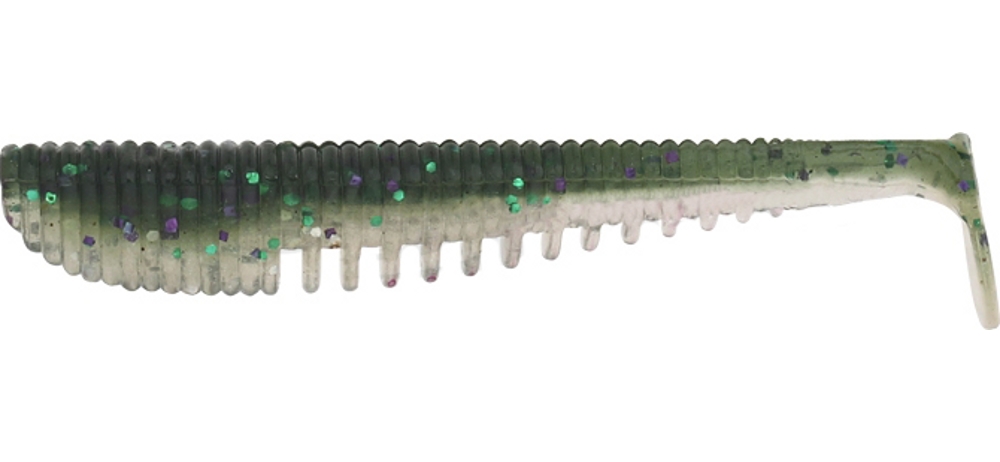 Геометрия тела напоминает небольшую рыбку. Обеспечивает динамичные колебания. Боковые «ребрышки» обогащают игру приманки, а внутренний полый канал в теле придает дополнительную гибкость и упрощает монтаж любой (Jig Head Rig, Texas Rig, Carolina Rig, Terminal Rig, Drop Shot Rig, Double Hook Rig), даже очень сложной оснастки.