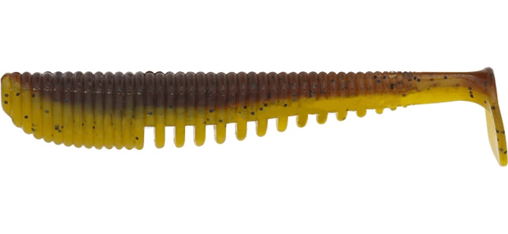 Геометрия тела напоминает небольшую рыбку. Обеспечивает динамичные колебания. Боковые «ребрышки» обогащают игру приманки, а внутренний полый канал в теле придает дополнительную гибкость и упрощает монтаж любой (Jig Head Rig, Texas Rig, Carolina Rig, Terminal Rig, Drop Shot Rig, Double Hook Rig), даже очень сложной оснастки.