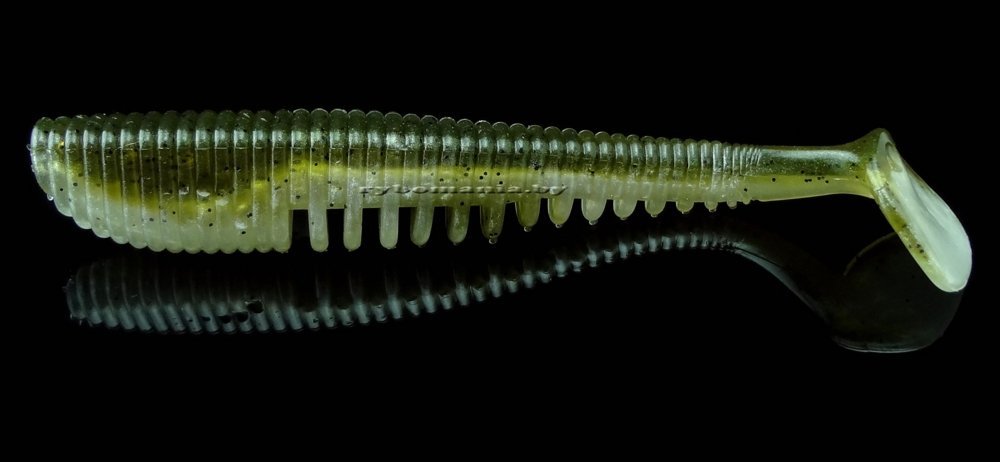 Геометрия тела напоминает небольшую рыбку. Обеспечивает динамичные колебания. Боковые «ребрышки» обогащают игру приманки, а внутренний полый канал в теле придает дополнительную гибкость и упрощает монтаж любой (Jig Head Rig, Texas Rig, Carolina Rig, Terminal Rig, Drop Shot Rig, Double Hook Rig), даже очень сложной оснастки.