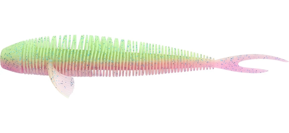 Подвижные реалистичные плавнички и асимметричный V-образный хвост, у которого верхняя часть длиннее нижней также добавляют “жизни” приманке.