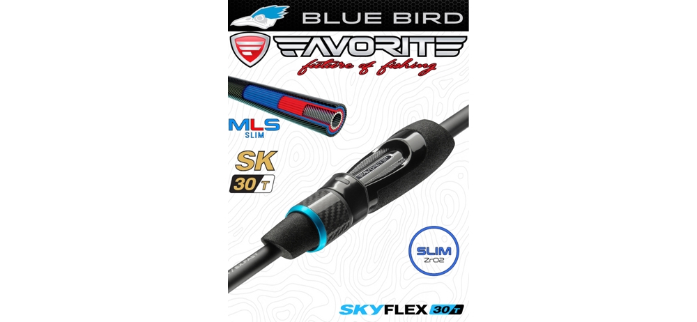 Обновления коснулись всех элементов Favorite Blue Bird и от старого удилища осталось только название. Так, бланк новой модели стал ещё жёстче, легче и чувствительнее. Для его производства использован карбон SkyFlex 30T, который является оптимальным для изготовления удилищ средней ценовой категории. Пропускные кольца оснащены тонкими вставками, которые в комплекте с облегчёнными рамами создают минимальную нагрузку на бланк, позволяя ему раскрыться в полной мере. Современный дизайн ручки делает её очень эргономичной и удобной и поэтому у рыболова появилась возможность класть палец на бланк для лучшего контроля оснастки во время проводки.