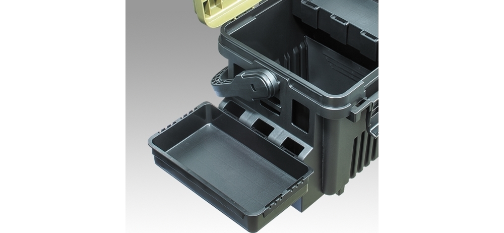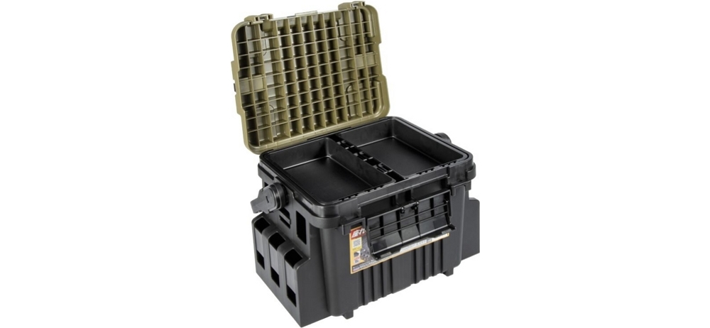 Рыболовный ящик MEIHO VS-7080N снабжён инновационной системой блокировки ручки в поднятом состоянии. Верхнее отделение бокса имеет откидную крышку с большим отсеком для рыболовных принадлежностей. Внутри находятся две полки-подставки, которые можно легко прикрепить по бокам, тем самым увеличив рабочую поверхность, на которой можно расположить рабочие воблеры блесны или инструмент нужный в данный момент.
