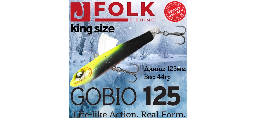 FOLKFISHING GOBIO специально сконструирован так, чтобы уменьшить зацепы тройника и перехлесты. А задняя часть имеет характерный срез – задний тройник не “защелкивается” в хвостовой части, при этом сам виб при подбросе уходит вперед – его игра похожа на игру балансира.