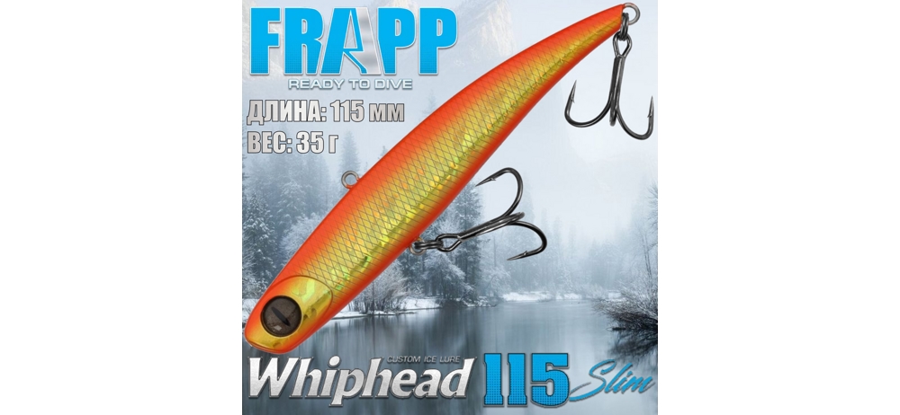«Младший» из «Слимов» — Whiphead 115 Slim — будет хорошим дополнением к серьезным моделям Whiphead 130 Slim и Whiphead 145 Slim, когда для соблазнения «зависшего» у лунки хищника требуется точно такая же приманка, но отличная по размеру и мощности игры.