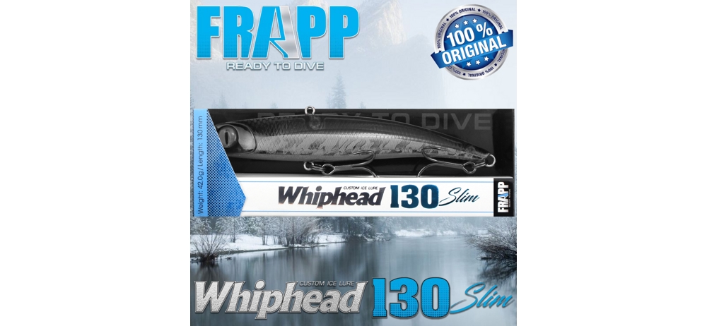 Основной способ анимации при отвесной ловле — короткие, аккуратные и плавные покачиания («мормышинг»). Другой вариант — плавно-ускоренные потяжки, подбросы разной интенсивности. Ввиду больших габаритов, для активной анимации Whiphead 130 Slim требуются движения большей интенсивности, чем при ловле на вибы Frapp меньшего размера.