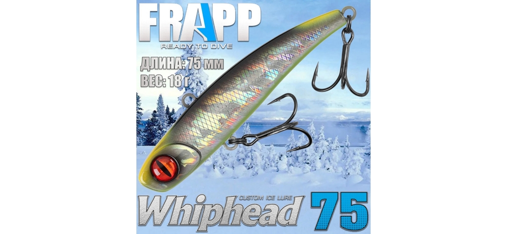 Как правило, легкие модели ратлинов, использующихся в спиннинговой рыбалке, тонут достаточно медленно. Вибы FRAPP лишены этого недостатка. Благодаря продуманной форме и грамотно расположенной огрузке, Whiphead 75 быстро «проваливается» в водной толще, а игра приманки четко ощущается даже на большой глубине. Это качество особенно важно при скоростной ловле, когда необходимо быстро доставить приманку в заданный горизонт и чувствовать ее игру.