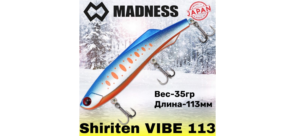 Madness Shiriten Vibe 113 - это одна из разновидностей приманки данного семейства вибов, в размере 113 мм и весом 35 гр. Помимо данной модели имеется еще несколько типоразмеров данного воблера, меньшего размеров.