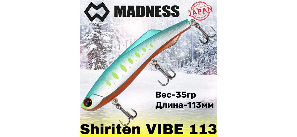 Madness Shiriten Vibe 113 - это одна из разновидностей приманки данного семейства вибов, в размере 113 мм и весом 35 гр. Помимо данной модели имеется еще несколько типоразмеров данного воблера, меньшего размеров.