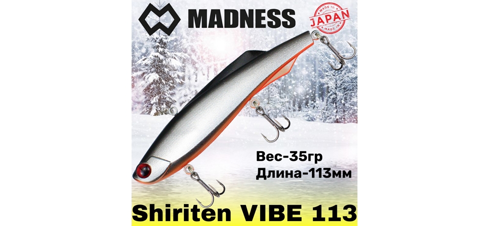 Madness Shiriten Vibe 113 - это одна из разновидностей приманки данного семейства вибов, в размере 113 мм и весом 35 гр. Помимо данной модели имеется еще несколько типоразмеров данного воблера, меньшего размеров.