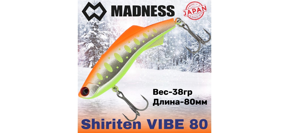 Madness Shiriten Vibe — семейство необычных воблеров-вибов. Дело в том, что вибы MADNESS имеют покрытие из силикона. По мнению производителя, приманки покрытые этим материалом имеют более естественное поведение при проводке, а значит, они более привлекательны для хищника.